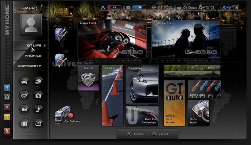 This project was a complete UI/UX redesign of the GT Mode menu from Gran Turismo 5. The original menu felt overwhelming, cluttered, and unintuitive for new players. My goal was to modernize the interface by introducing a clean, consistent, and genre-appropriate design - one that better aligns with modern UX principles and sim racing aesthetics.
